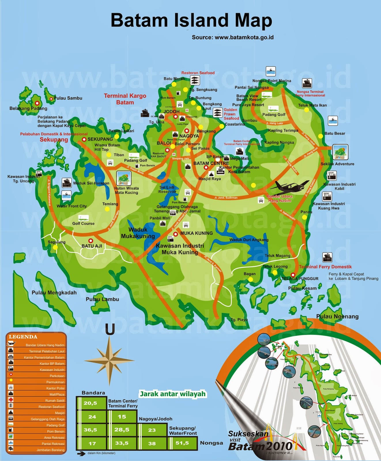 Being a part of the Indonesia-Malaysia-Singapore Growth Triangle, Batam is considered as a free-port zone. It is located south of Singapore (20km away) and separated by the Riau Strait from another Indonesian island, Bintan.