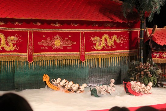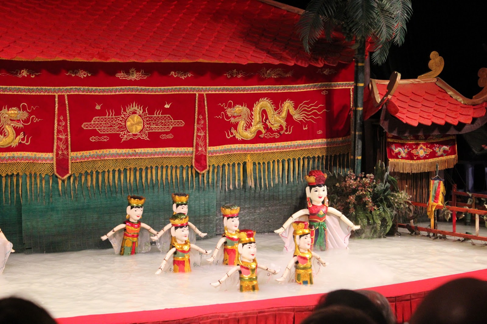 The puppets on the water dance to wonderful music performed by these very talented artists.