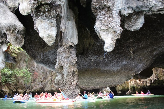 After about 15-20 minutes of cruising, we arrived at the first stop which is Naka Island. To get to the island, we need to canoe our way from the boat together with a friendly guide who’s in charge of expertly paddling towards the shore.