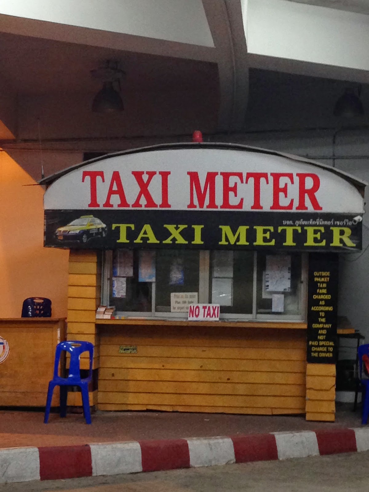 The metered airport taxi that guarantees no hidden or extra charge when you hire one. There is a small booth on the far right corner when you exit the arrival area of the airport. Look for the counter (photo below) and tell the lady what area are you going and which hotel.