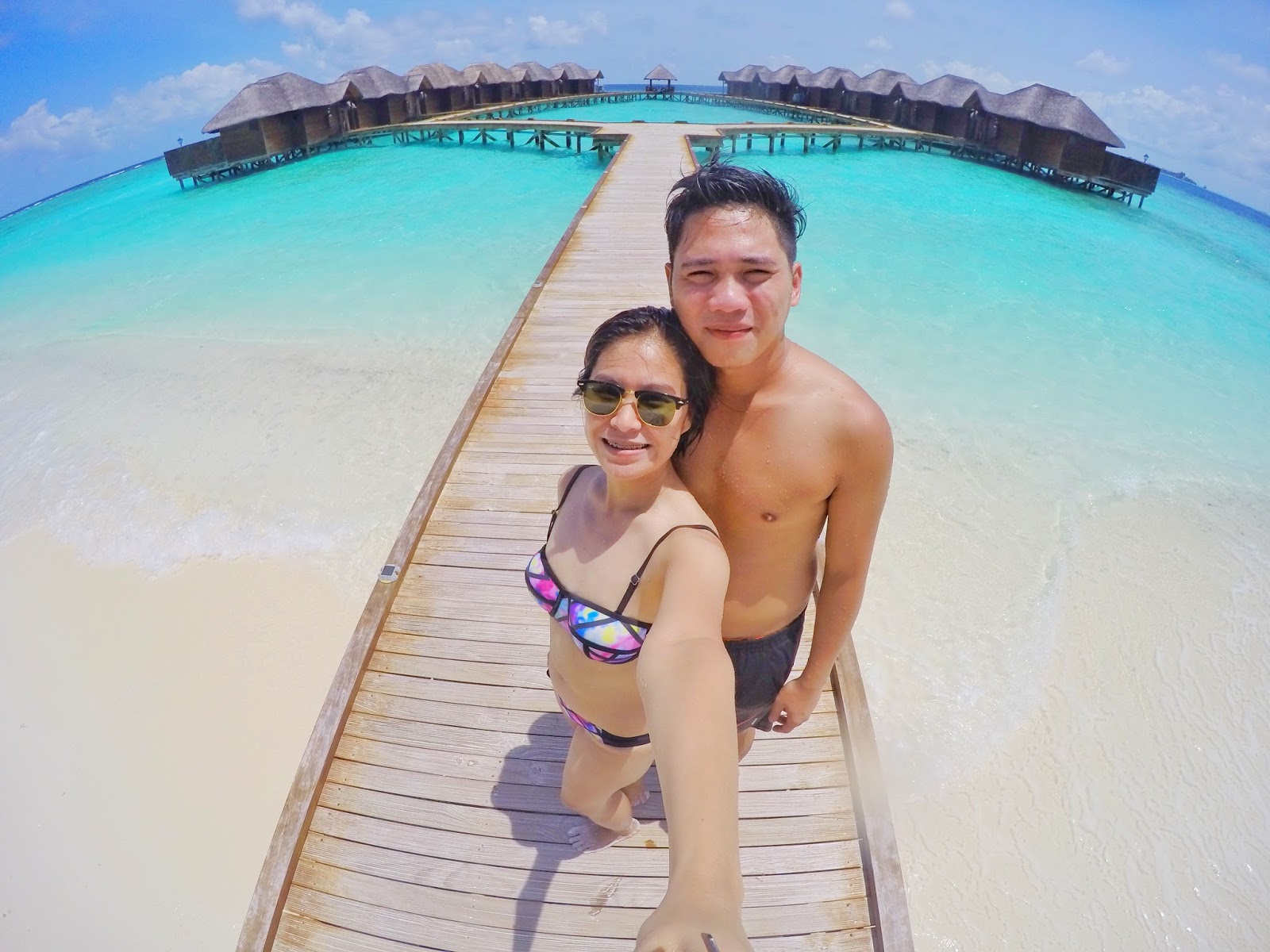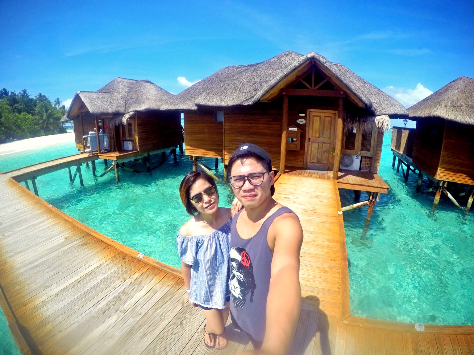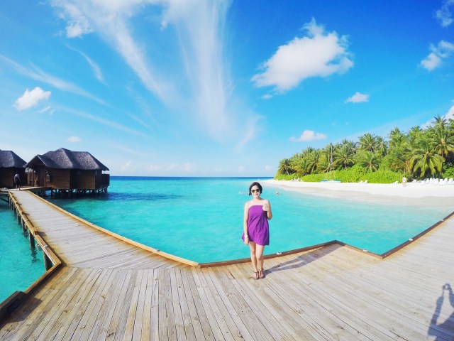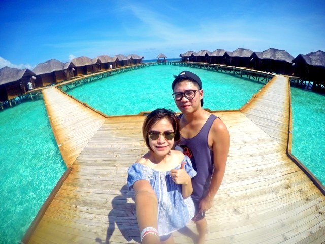 Even right now I am in maximal disbelief whenever I see this amazing backdrop! The fine white sand, the azure, hand-painted sky and the crystal clear water, not to mention the exquisite water villas situated on the prime locus of this island. We’ve been to this paradise, bitches, not photoshopped!