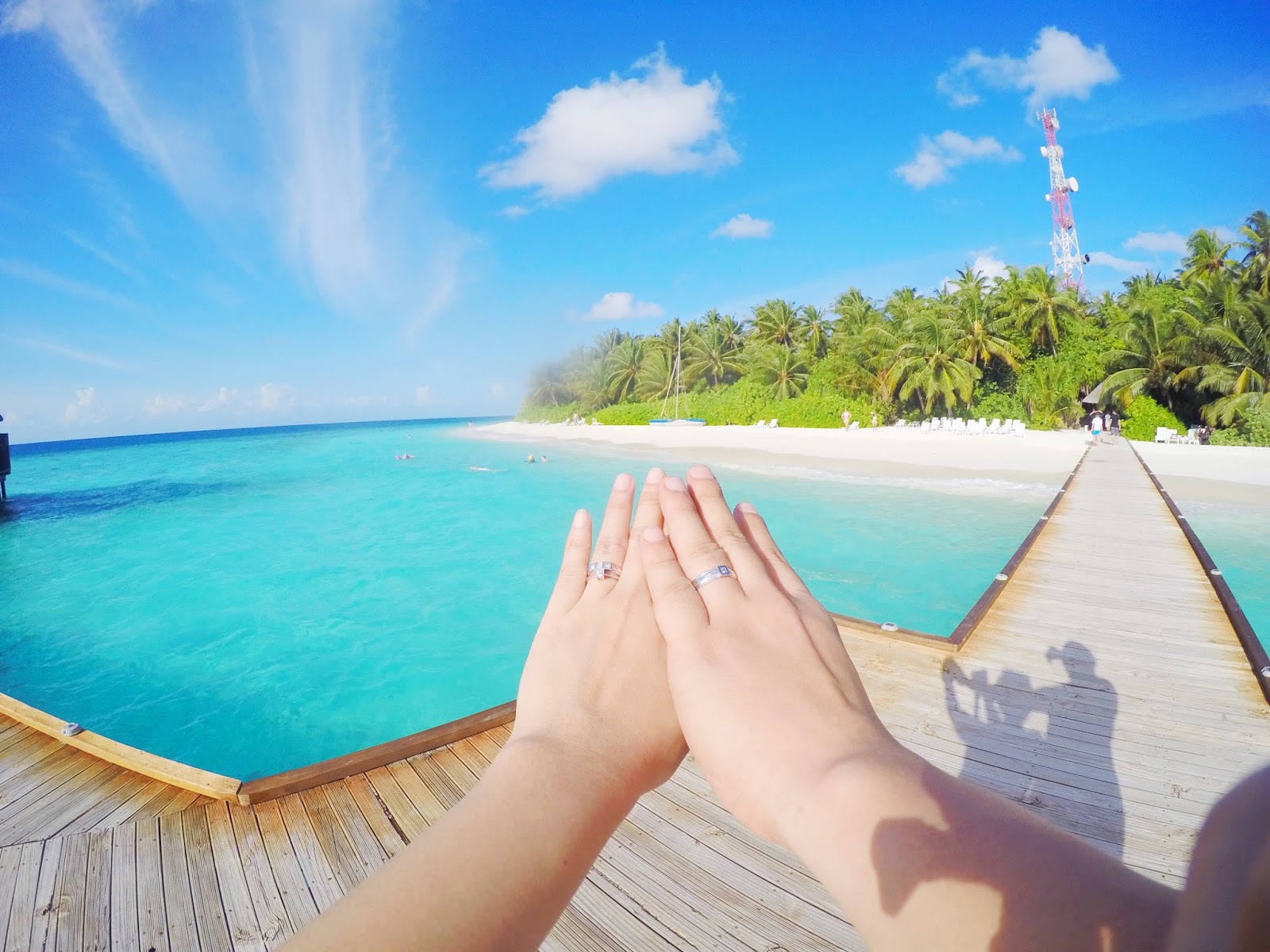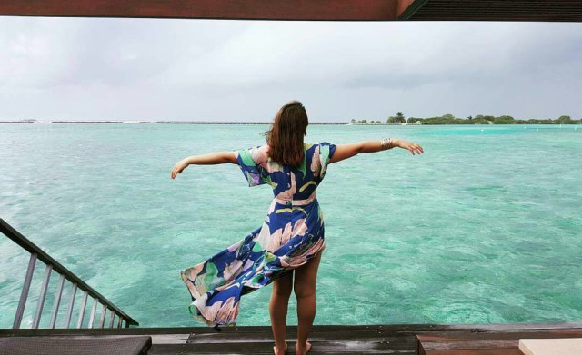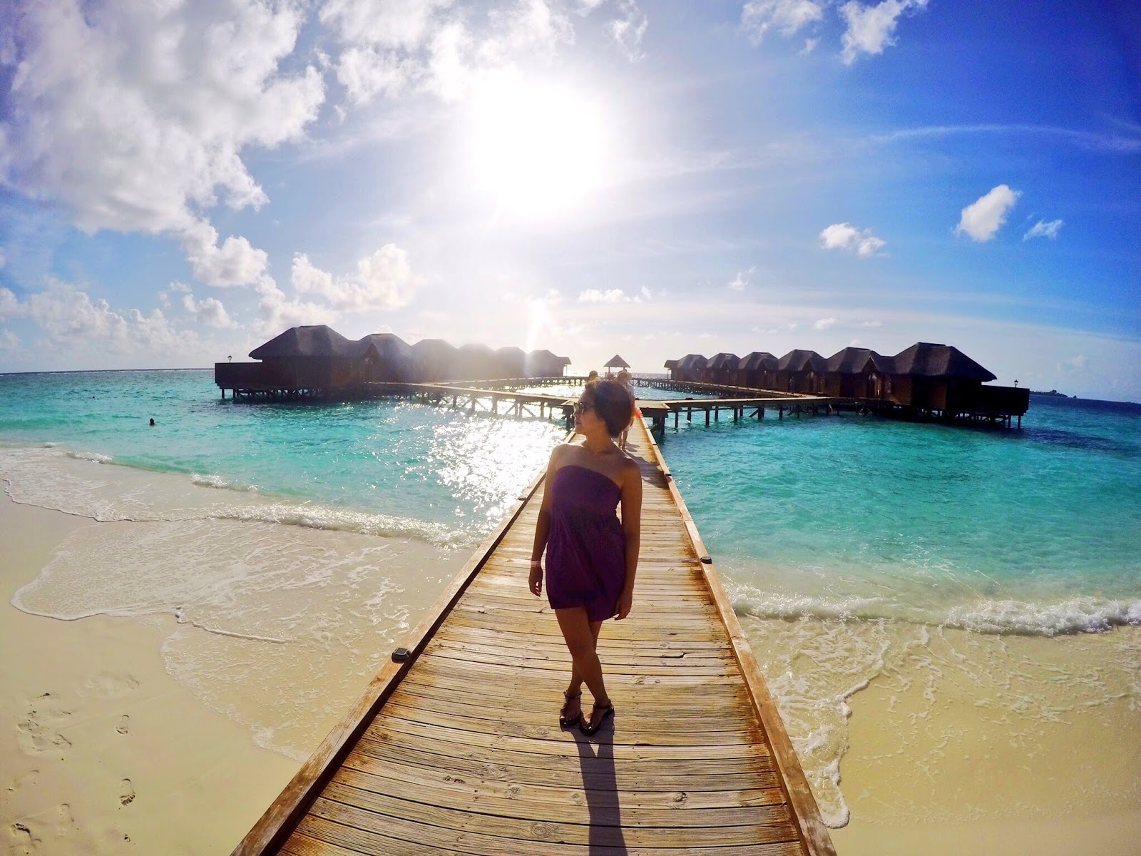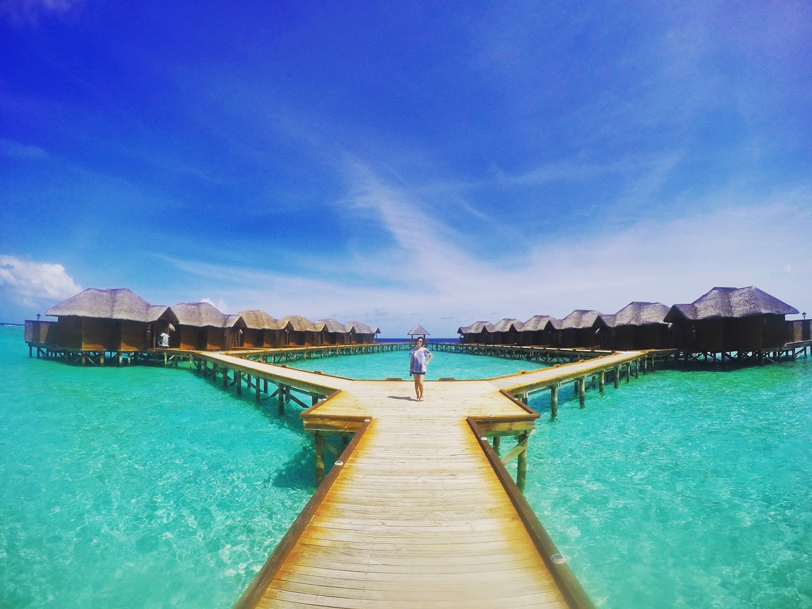 Even right now I am in maximal disbelief whenever I see this amazing backdrop! The fine white sand, the azure, hand-painted sky and the crystal clear water, not to mention the exquisite water villas situated on the prime locus of this island. We’ve been to this paradise, bitches, not photoshopped!