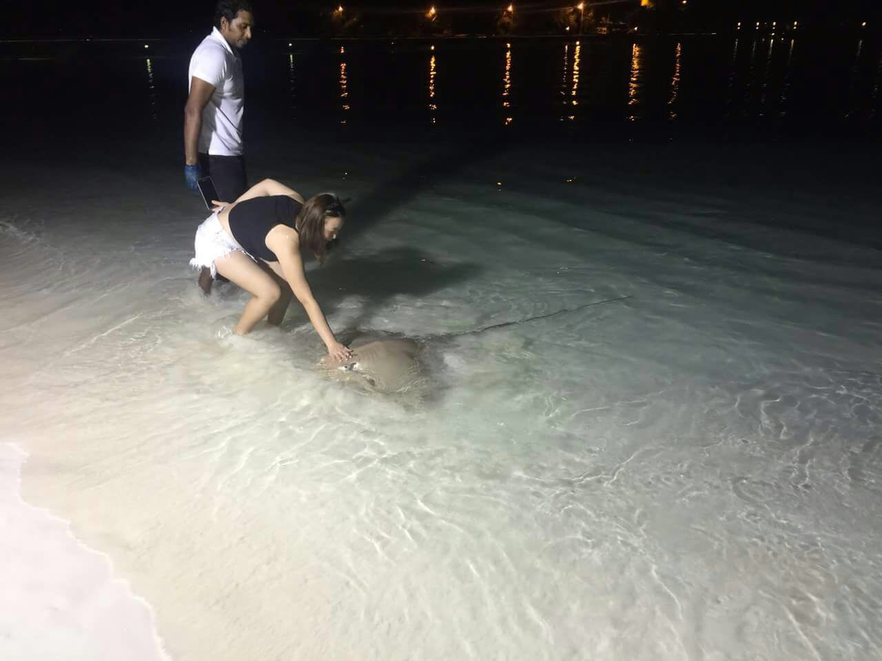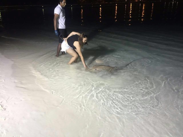 My girl pal Nicole, who recently had her holiday in Maldives, bravely playing with some friendly sting rays by the shore. Kudos, girl!