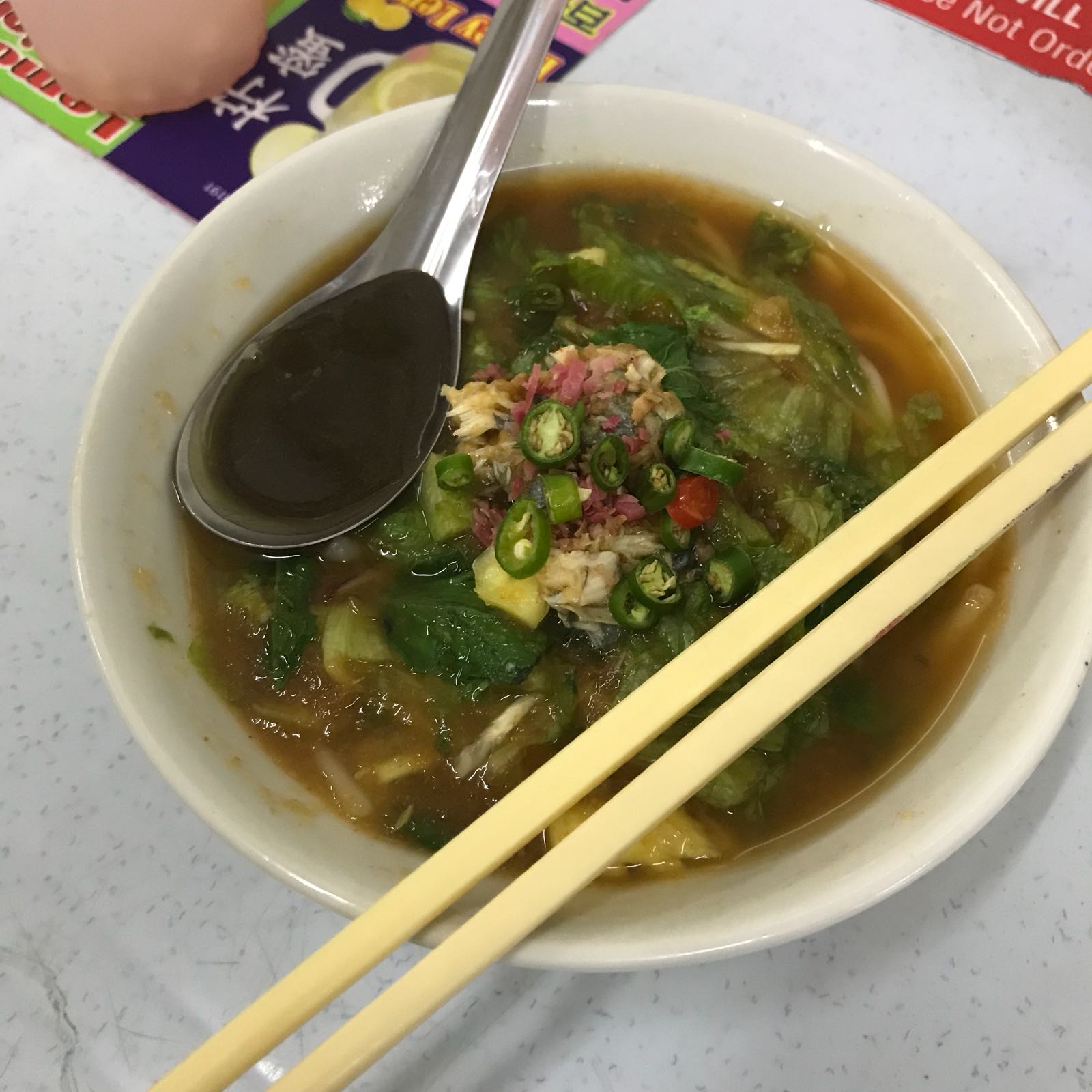We had this bowl at Kafe GoodAll, there was only one stall who sells asam laksa in this hawker centre, so there’s zero chance that you’ll miss it. 1 bowl sells for RMB5.00 with an option to top up the noodles & soup.
