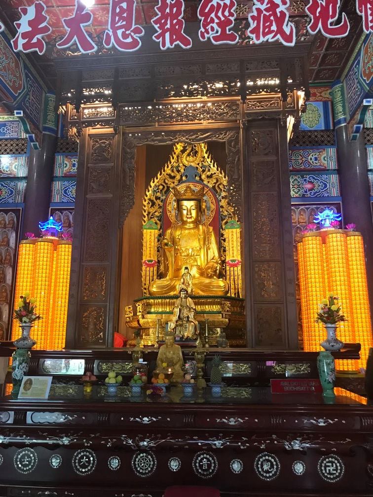 The entrance is located at the base, kinda like a small passage with vendors on both sides. I didn’t know what to expect before heading to this place, but from afar, we could already see the enormous bronze statue of Kuan Yi (Goddess of Mercy) and the seven-storey Pagoda with 10,000 buddha. It screams of grandeur and serenity covered with lush greens. And it sparked my curiosity that I didn’t notice the slow climb we were making.